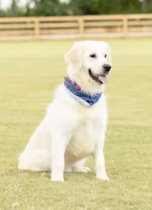 As an English Cream Golden Retriever, Lexie embodies everything we love about the breed. She is eager to please, intelligent, and quick to learn new things, making her not only a delight to be around but also a joy to train and spend time with. Her calm, confident demeanor is balanced perfectly with a playful spark, creating a dog who is both gentle and spirited.