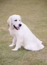 Skye is our fun-loving, affectionate girl whose almost all-white coat makes her truly stand out. She has such a joyful spirit and a natural ability to connect with everyone she meets. Whether it’s playing fetch in the yard, greeting new friends, or simply curling up close for some quiet time, Skye does it all with the gentle, loving nature that English Cream Golden Retrievers are known for. She especially enjoys the company of other dogs and has a way of turning every playtime into a happy adventure.